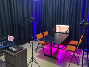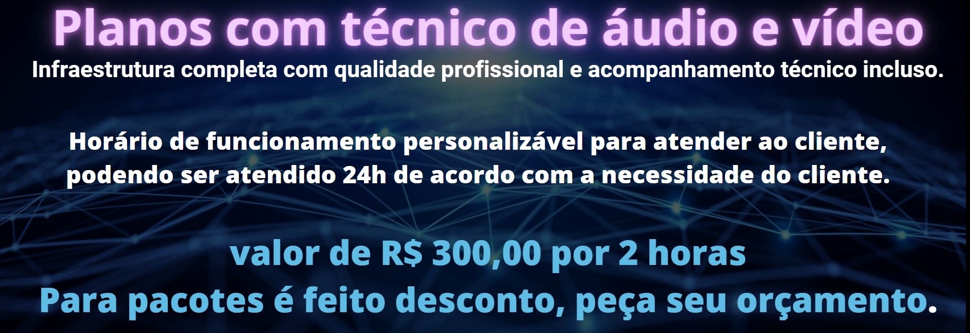 Ficará a sua disposição, 4 câmeras, 4 microfones, 1 notebook HP, 1 MacBook pro,mesa de corte de vídeo, mesa de som, canhões de luz e Tv para você personalizar e passar conteúdos, fotos, vídeos diretamente do podcast.